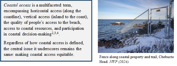 But the coast is also a space of growing conflict. Across Nova Scotia, there is a long standing history of tensions between public and private access, between economic development and environmental protection, and between the authority of governments and the rights and claims of communities and Indigenous Nations. Amid the failure to address these tensions, coastal access has become more restricted by legal ambiguity and privatization; inequities in who gets to enjoy (or control) the coast often reflect deeper, systemic disparities shaped by race, class, and colonial history—for example, the systemic disenfranchisement of African Nova Scotian’s from coastal spaces such as Africville. As climate change transforms coastal regions, those least responsible for the emissions and pollution accelerating it are often the most vulnerable to its impacts.